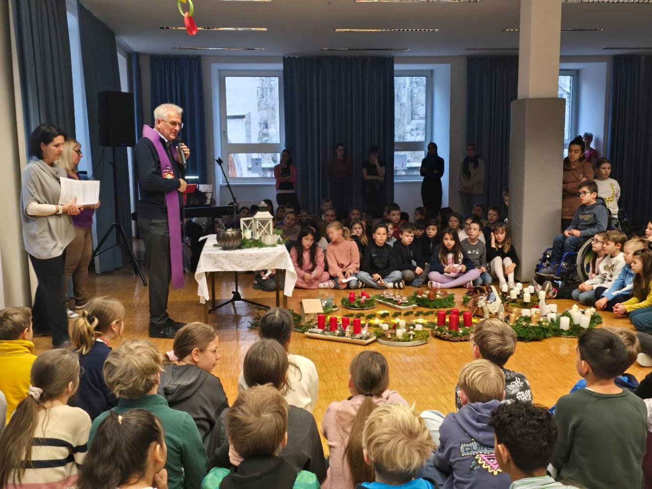 Adventkranzweihe von VS Hans-Sachs Schwaz 27. November 2025 1a 1b 1c 2a 2b 2c 2d 3a 3b 3c 3d 4a 4b 4c 4d 1M 2M DFK1 DFK2 Mit einer Adventgeschichte, stimmungsvollen Liedern und sinnlichen Texten haben wir uns auf die kommende Weihnachtszeit eingestimmt.Die Segnung der Adventkränze wurde von Dekan Martin Müller durchgeführt. Herzlichen Dank dafür!