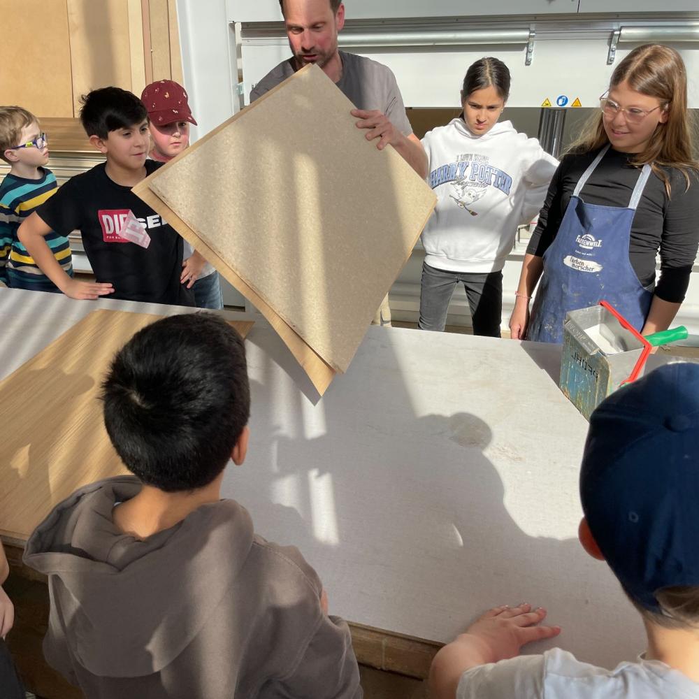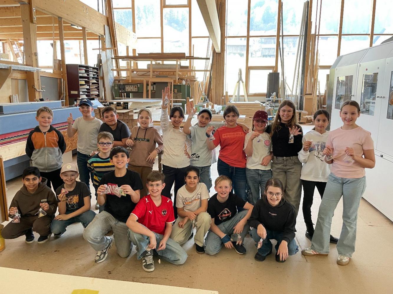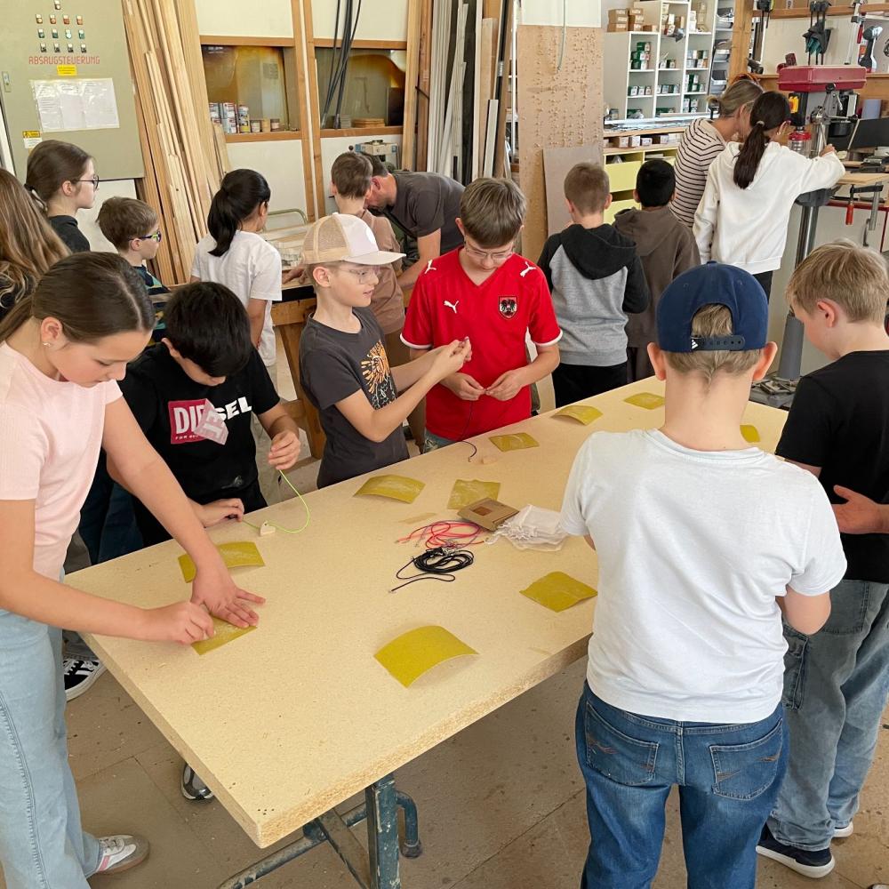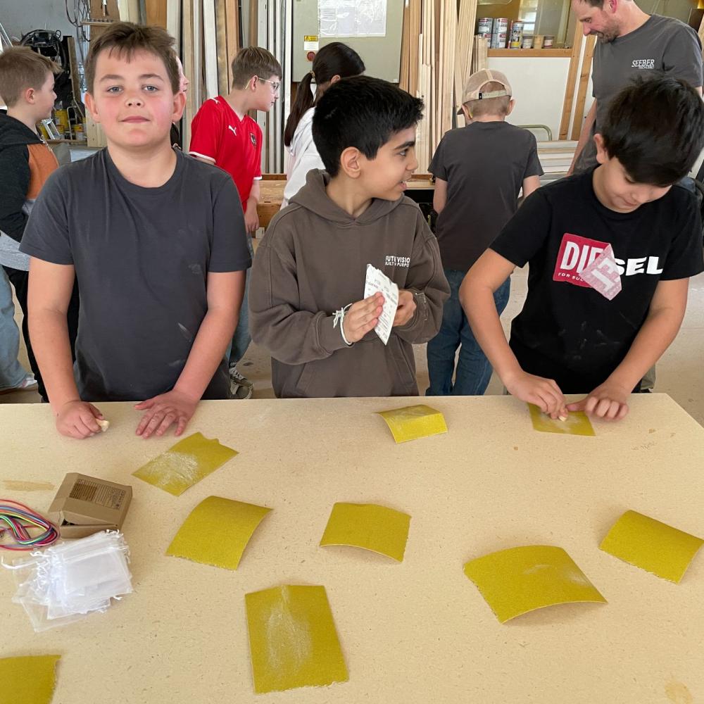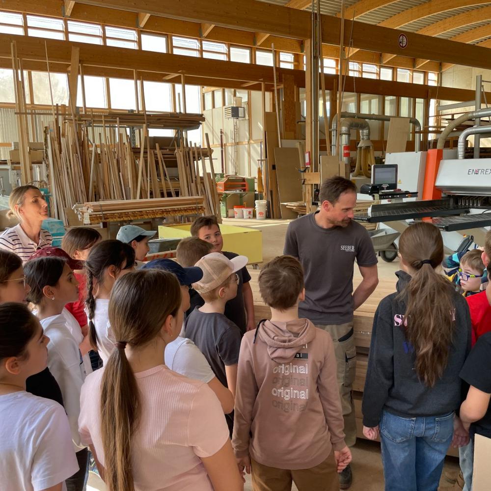 Der Chef persönlich führte uns durch seine Tischlerei und zeigte uns die ganzen beeindruckenden Maschinen. Wir konnten sehen, wie Holz gehobelt, zugeschnitten, geschliffen, furniert, gebohrt und lackiert werden kann. Danach durfte noch jedes Kind ein eigenes Herz mit der Säge sägen, schleifen, ein Loch bohren und einen Anhänger daraus basteln. Zum Abschluss gab es noch eine kleine Jause. Vielen Dank für diesen tollen Nachmittag!