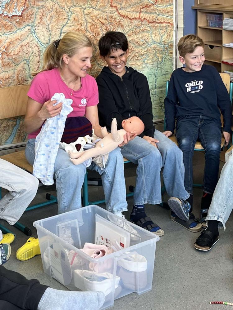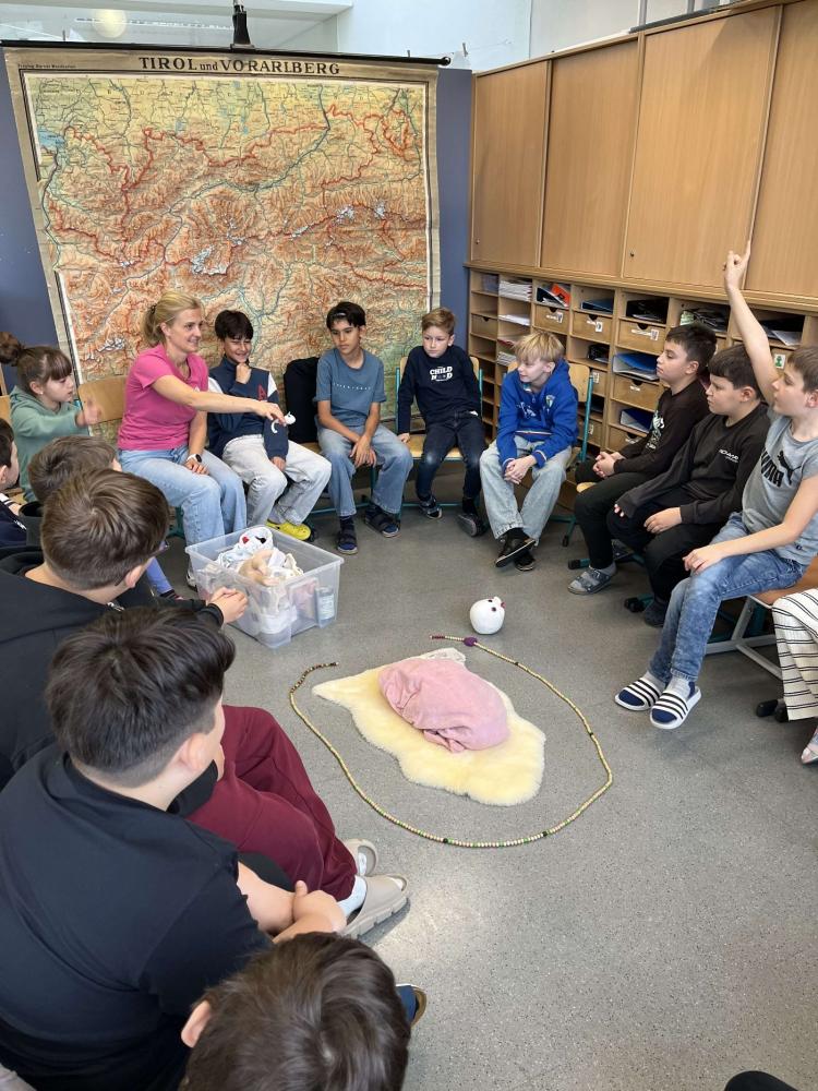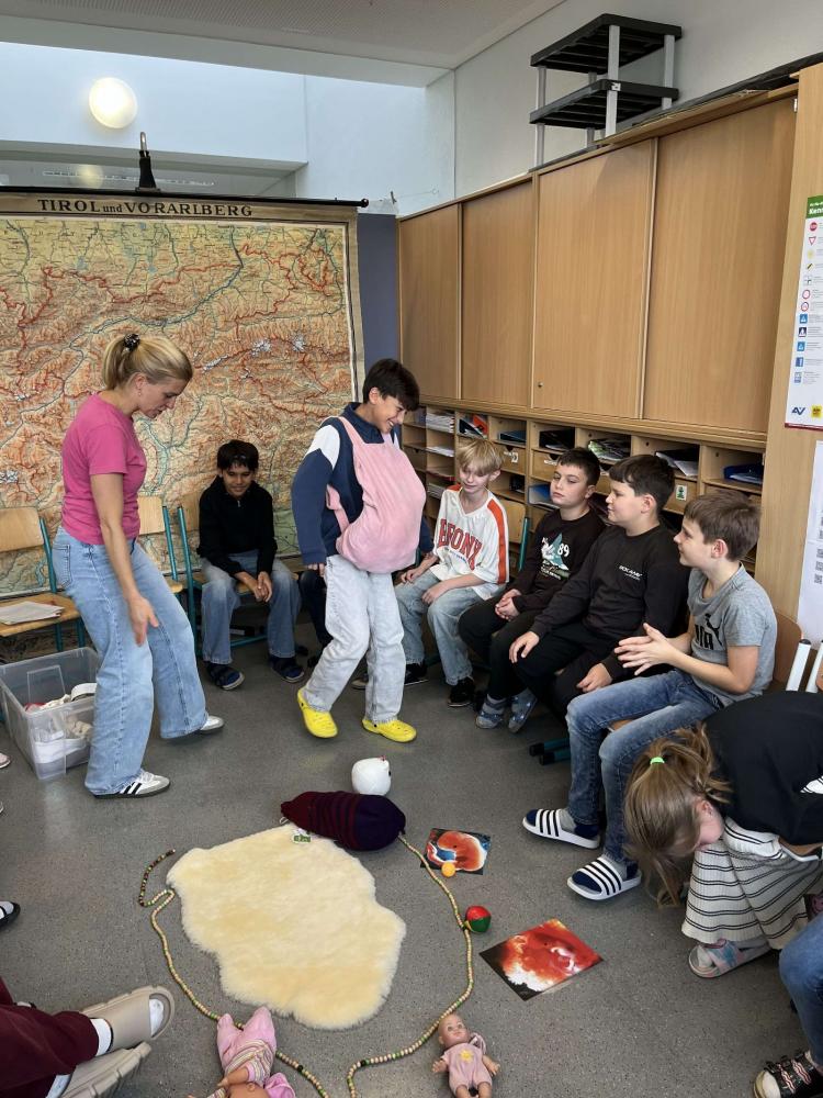 Als selbstständige Hebamme (https://hebammen-schwaz.at) hat sie bereits jahrelange Erfahrung und wir hörten faszinierend ihren Erzählungen. Sehr anschaulich erklärte uns Agnes alles über die Entstehung, die Entwicklung und schließlich über die Geburt eines Babys. Alle durften ein "Neugeborenes" als Puppe halten und auch das Gewicht eines Bauches während der Schwangerschaft tragen. Kaum zu glauben, wie schwer das ist.
