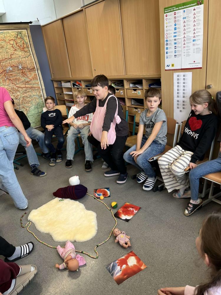 Kurz vor den Herbstferien bekam die 4a Besuch von Hebamme Agnes Müller.