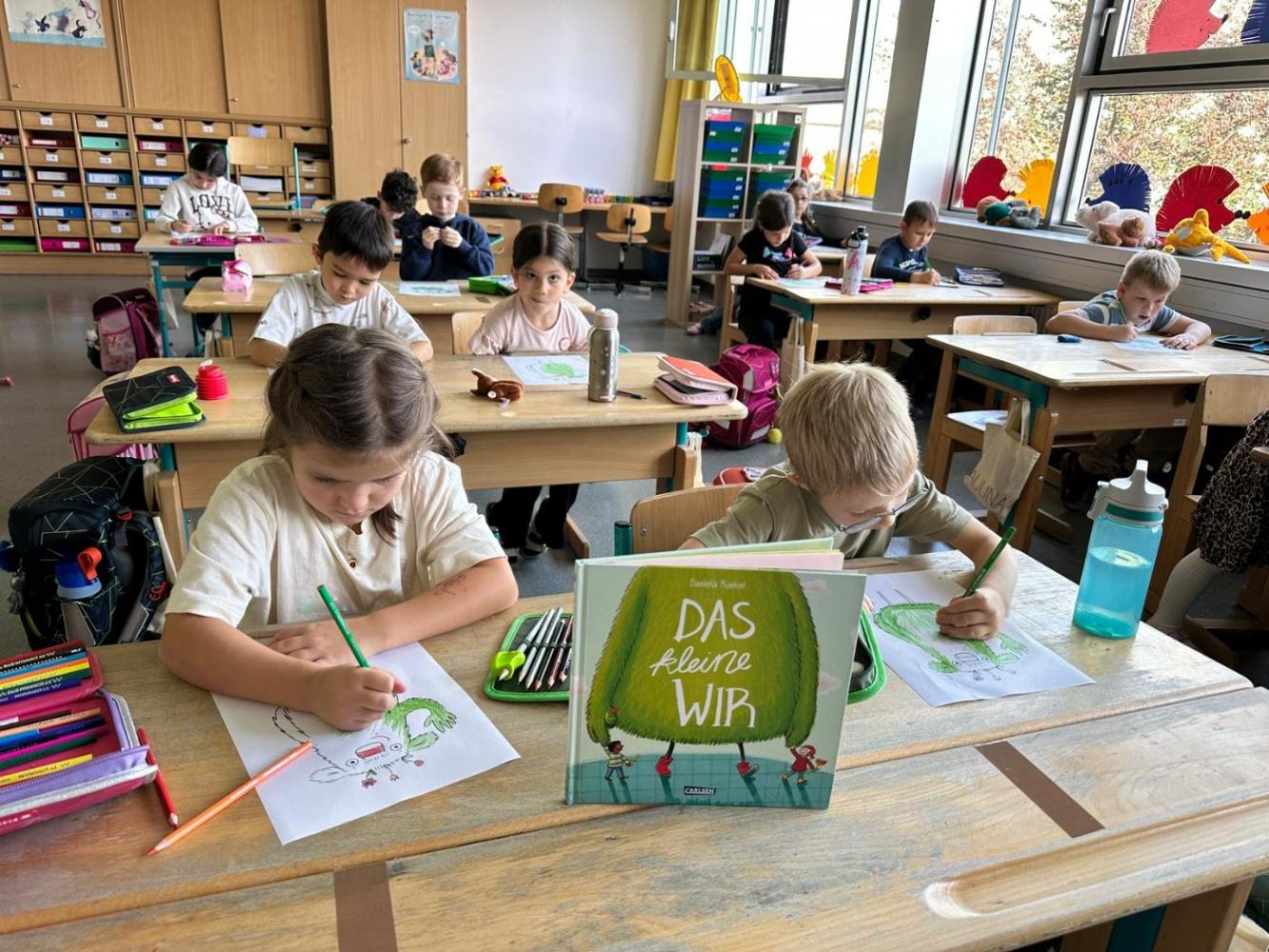 Das kleine WIR von Veronika Schumacher 13. Oktober 2025 1b "Das kleine WIR", diese schöne Geschichte durften wir in der Büchereistunde hören. Anschließend malten wir das kleine WIR und das WIR unserer Klasse wuchs ein Stückchen.