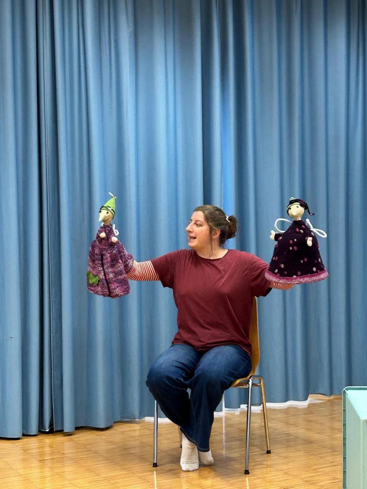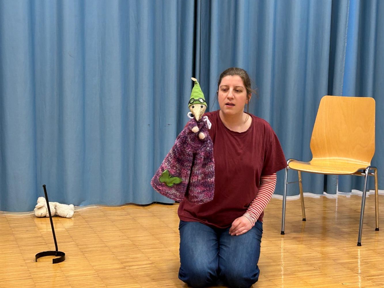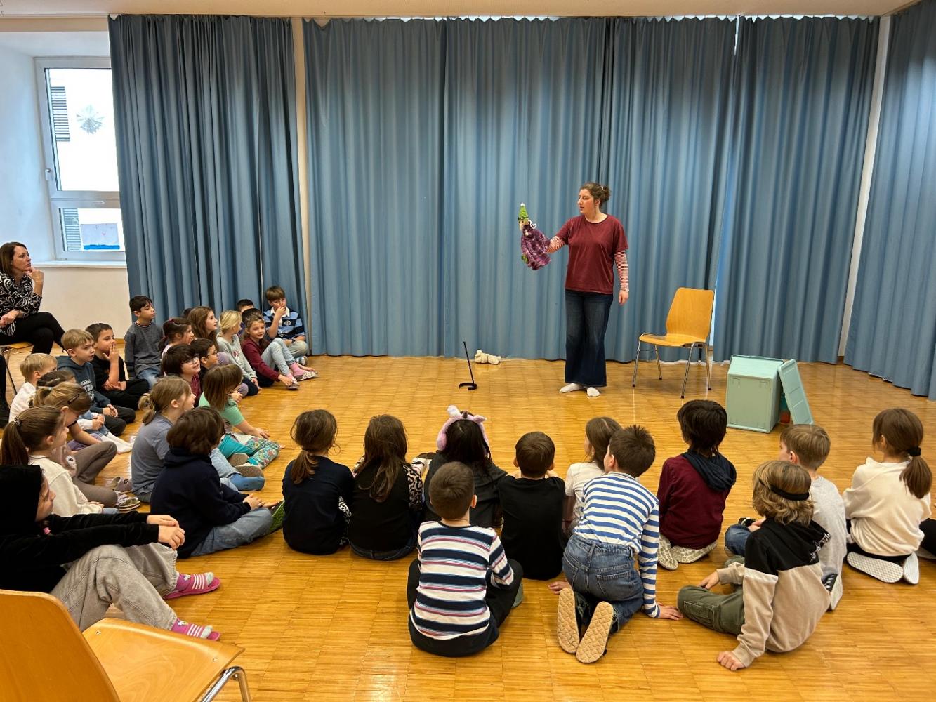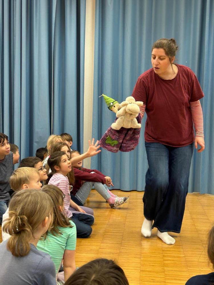 Die Schauspielerin und Theaterpädagogin Michaela Tusch spielte für die Klassen 2a und 2c das Puppentheaterstück „Ein käferkleines Stück vom Glück“. Das Stück ist angelehnt an die Geschichten von Cornelia Funke.