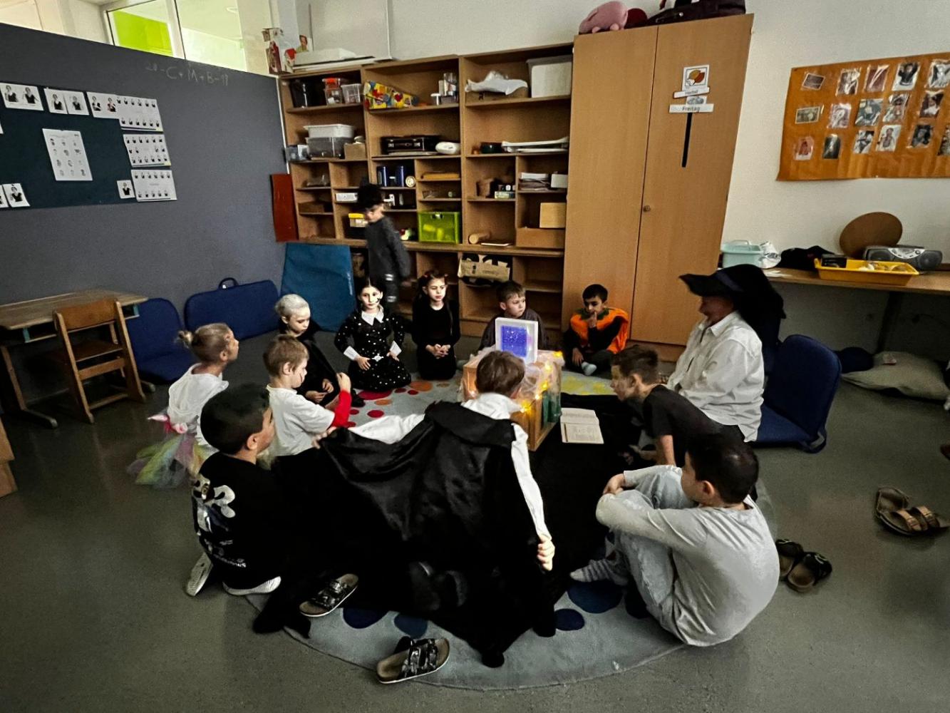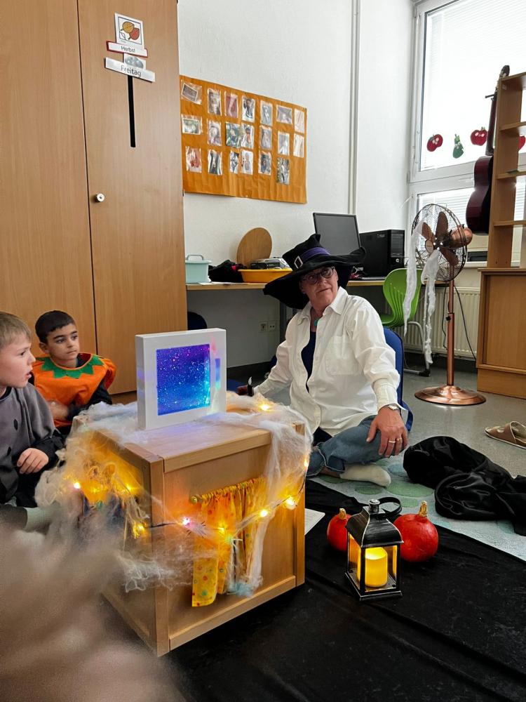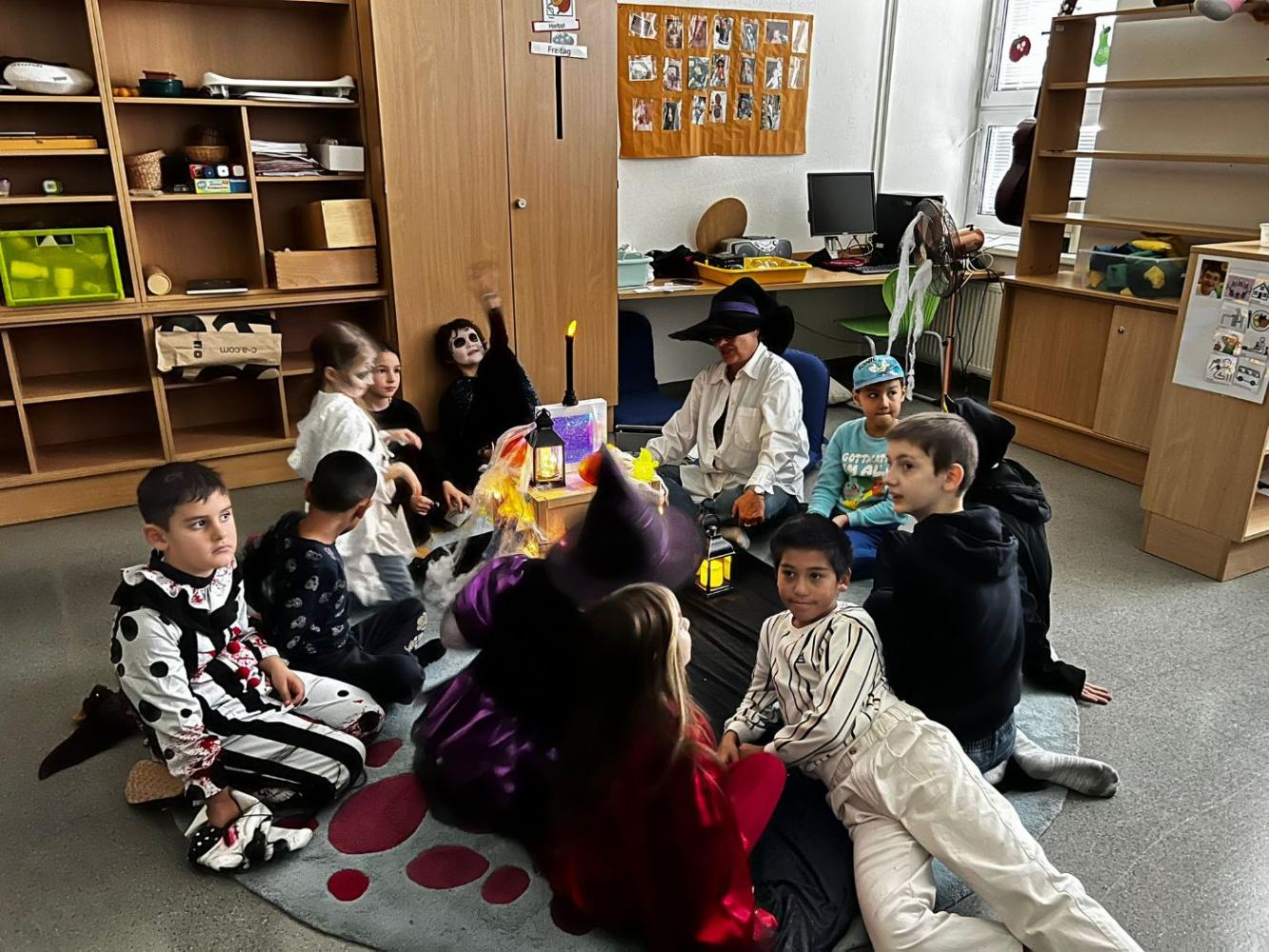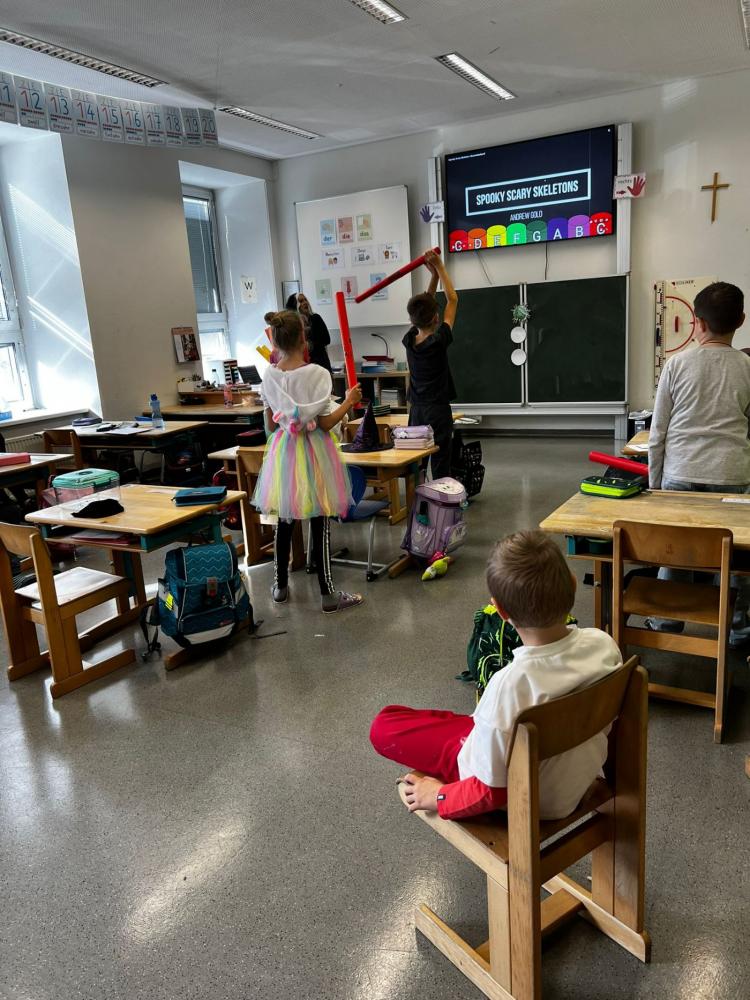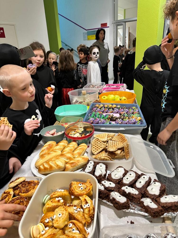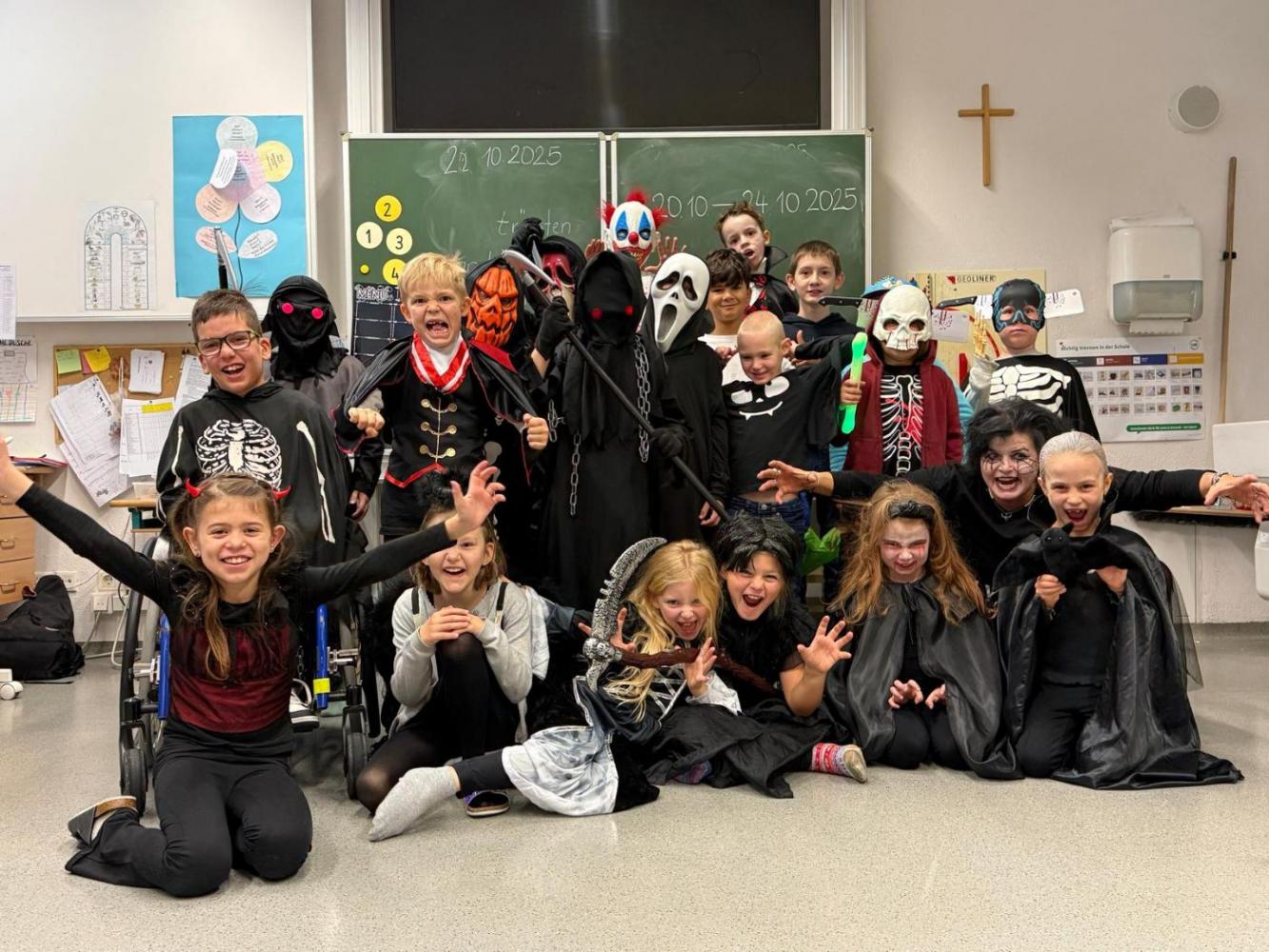 Am Freitag, den 24. Oktober trieben sich äußerst gruselige Figuren im 2. Stock herum. Alle Klassen im 2. Stock öffneten für das Gruselkabinett die Türen. Die Gestalten durften in Gruppen die Stationen besuchen. Dabei waren eine Gruselgeschichte, eine Schminkstation, ein Hexentanz, eine Geschichte für alle Sinne, eine Boomwhacker-Liedbegleitung, eine Bastelecke, Stationen im Turnsaal und ein tolles, schauriges Halloween-Buffet. Nach dem Fest starteten alle in die verdienten Herbstferien.