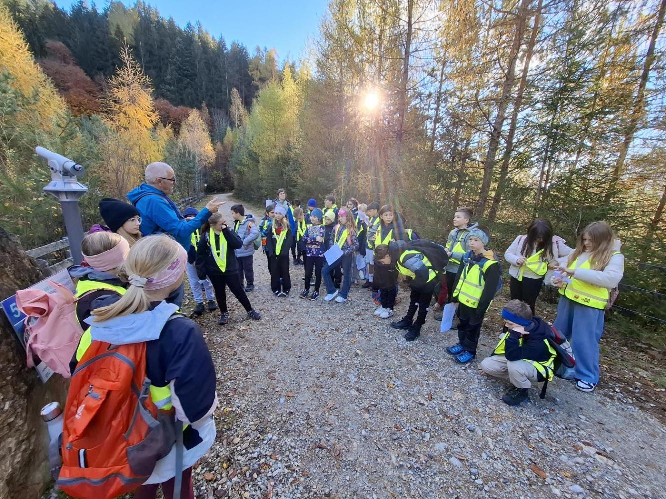 Knappensteig von Christoph Wechselberger 06. November 2025 4a 4c Im Zuge des Sportunterrichts kombinierten die 4a und die 4c Lesen und Bewegung.Wir marschierten bei herrlichem Herbstwetter zum Pflanzgarten und stellten uns gegenseitig die 10 Stationen des Knappensteigs vor.Danke an den Lesepaten Thomas der uns bei diesem tollen Ausflug begleitet hat!
