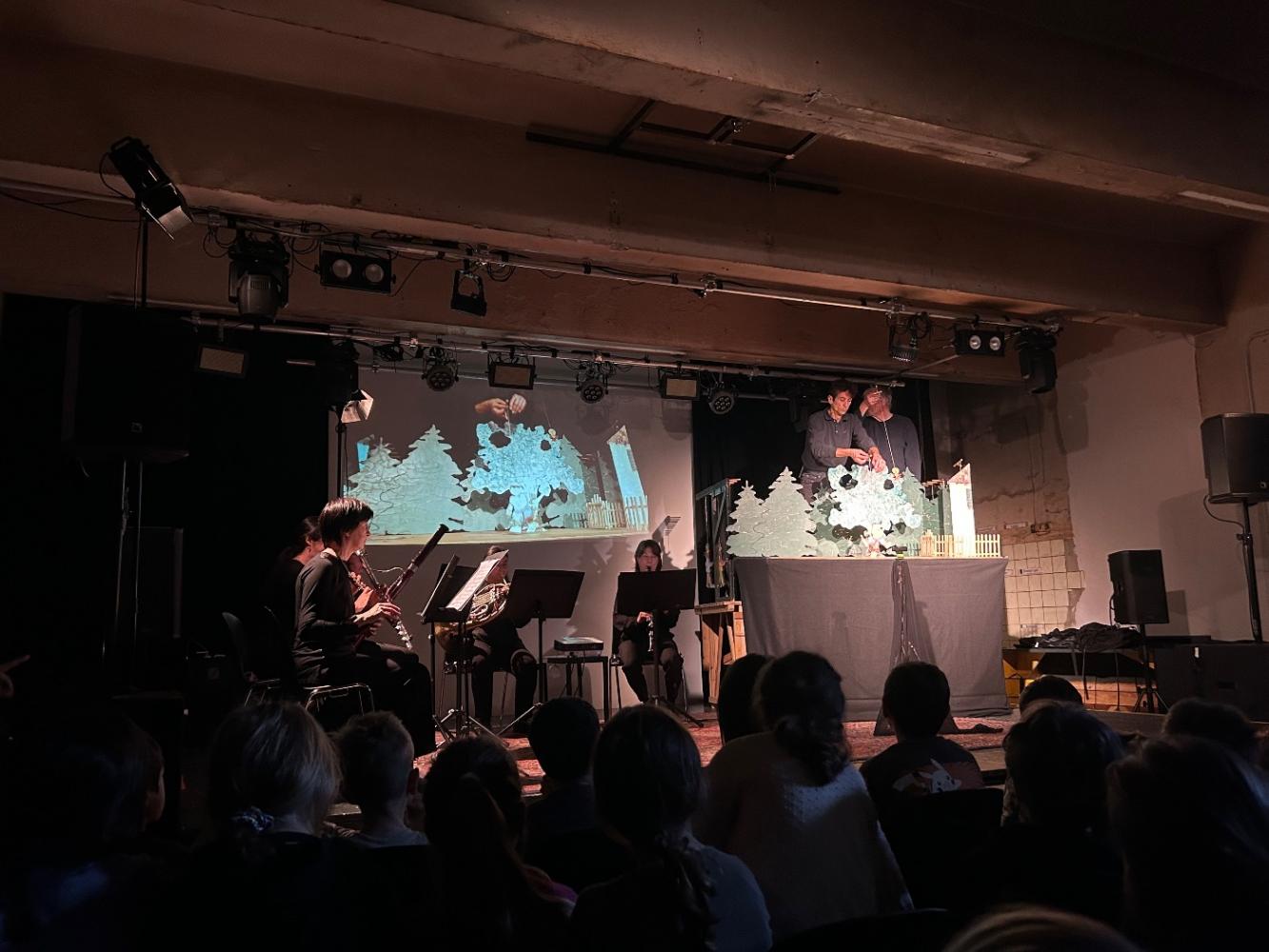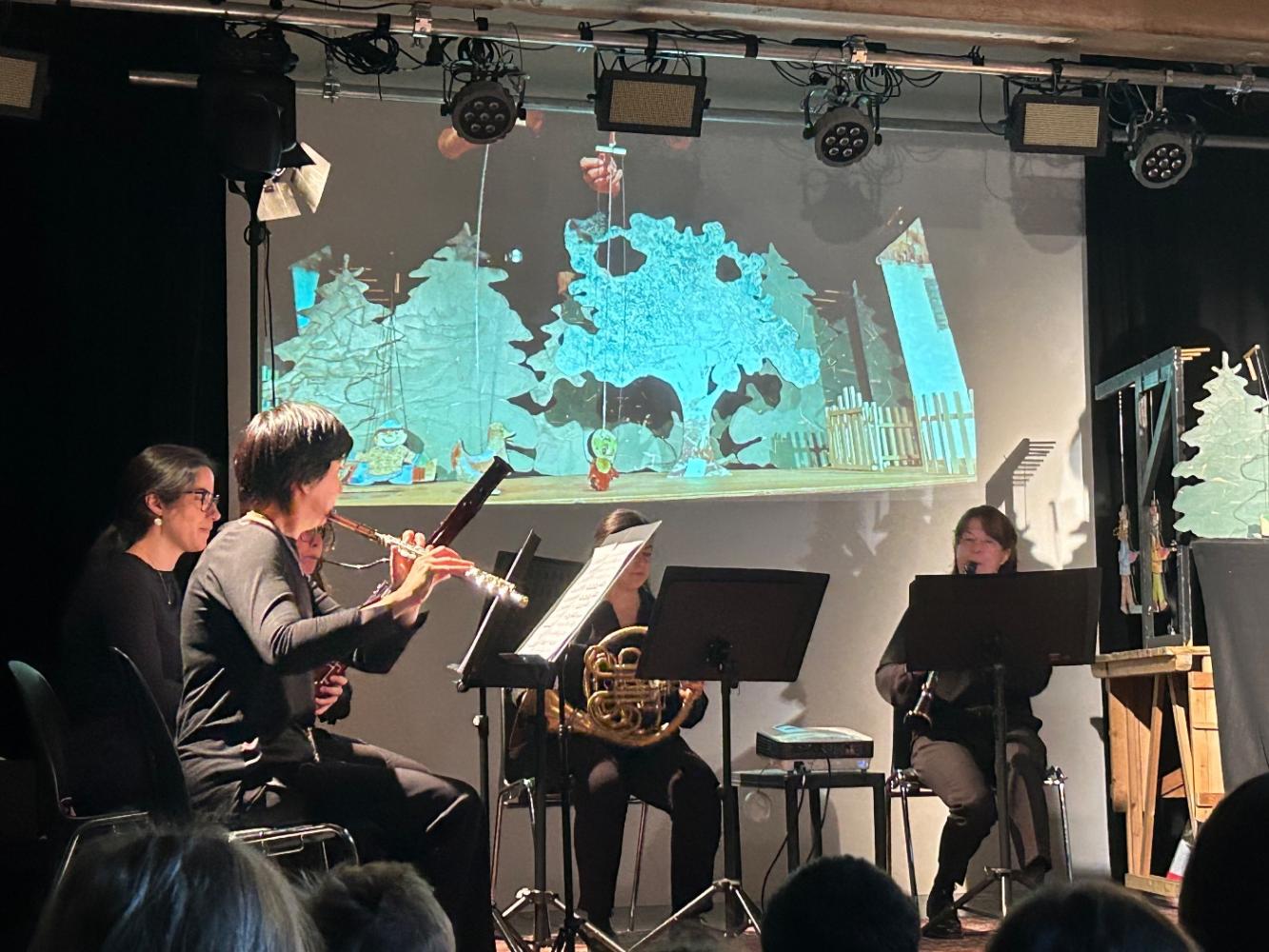 Ein Holzbläserquintett begleitete das Stück live und ließ die einzelnen Charaktere musikalisch lebendig werden.