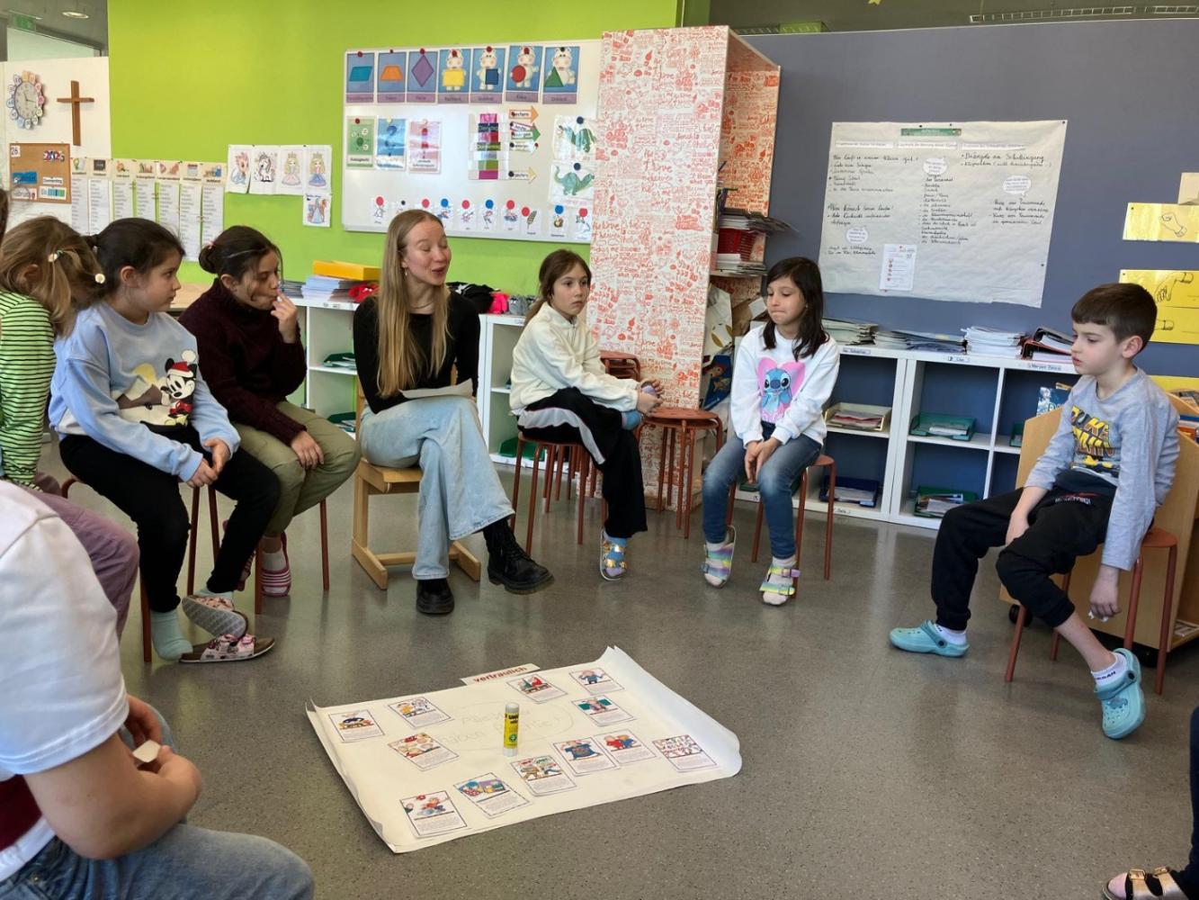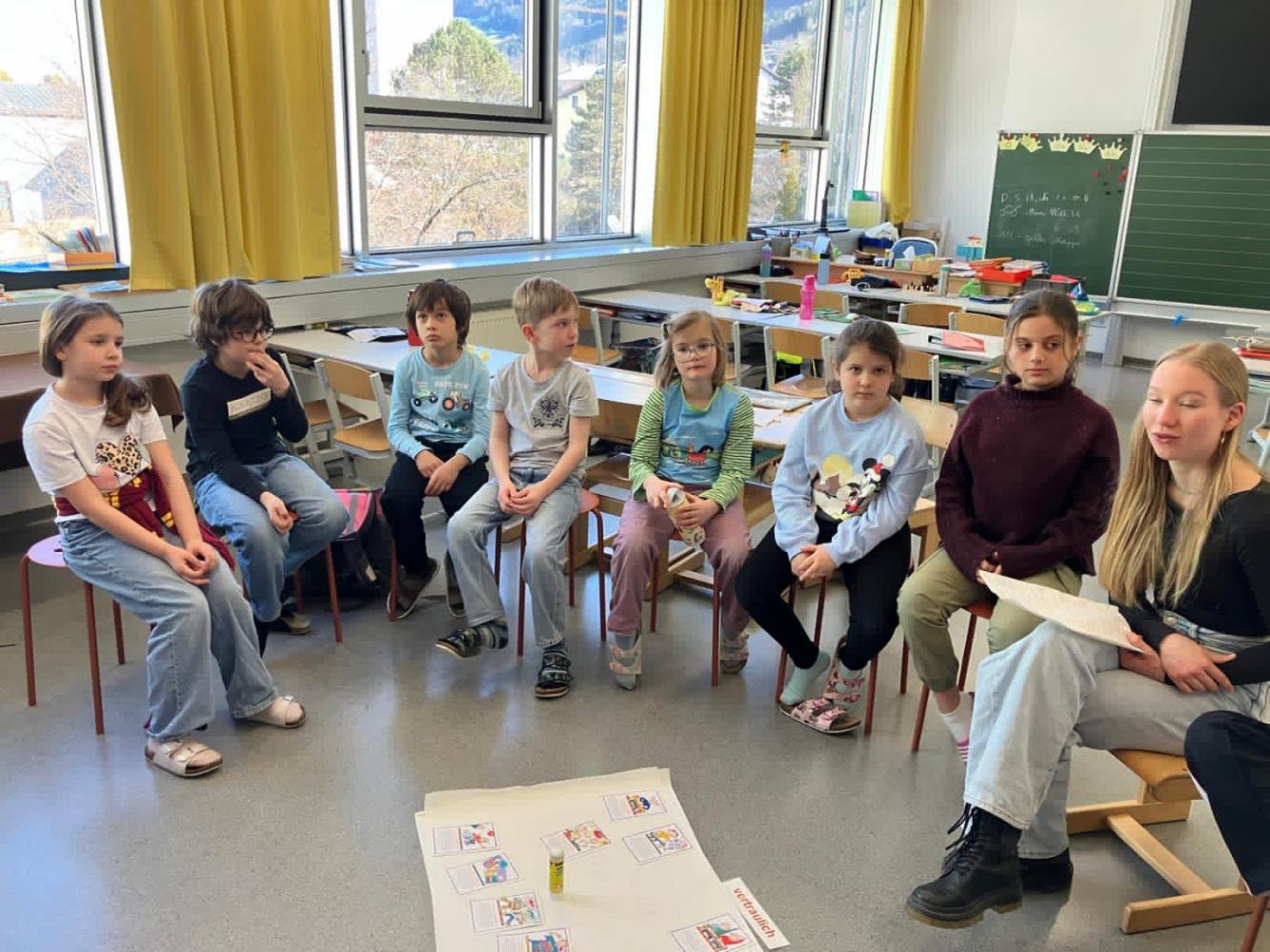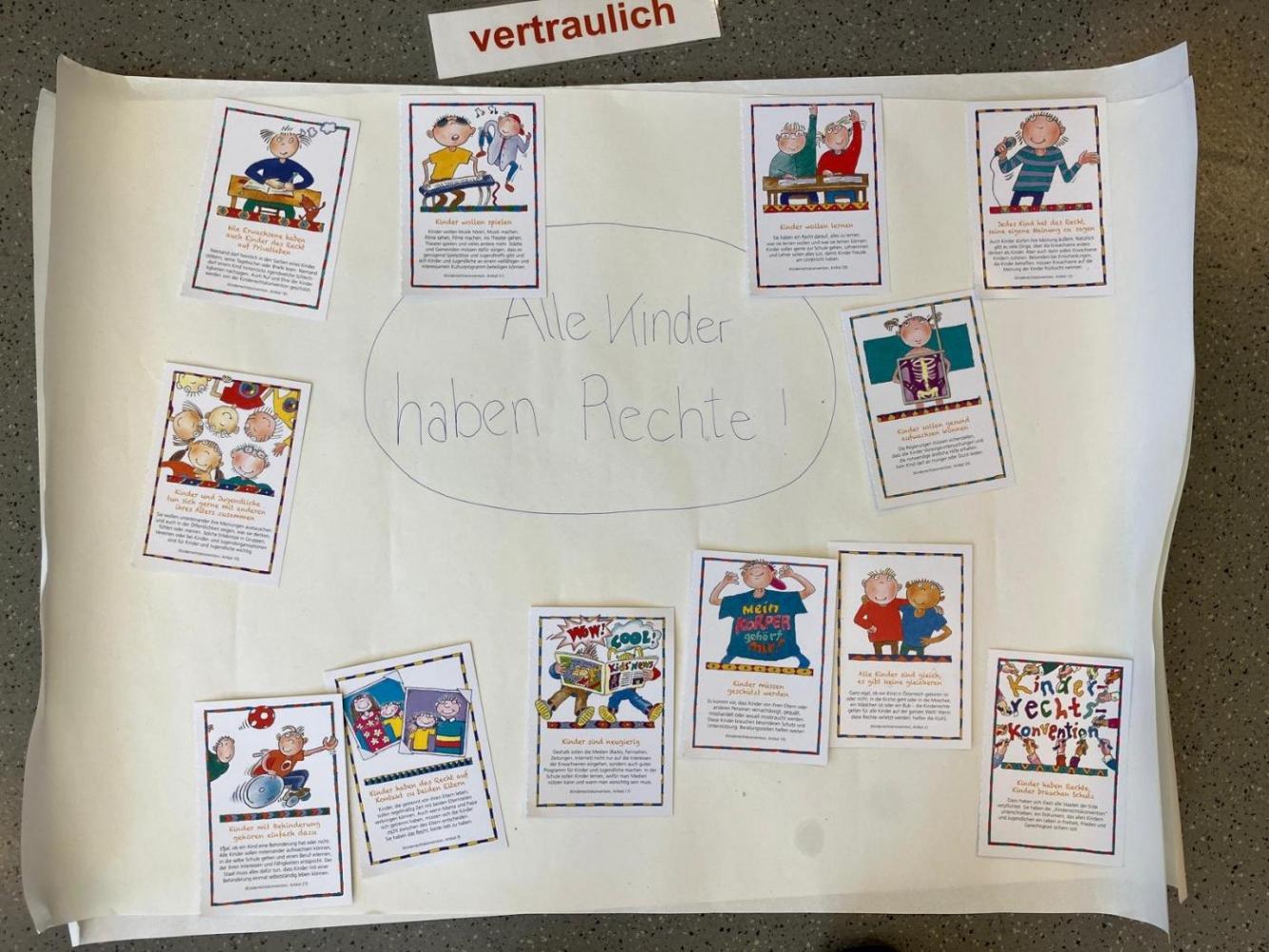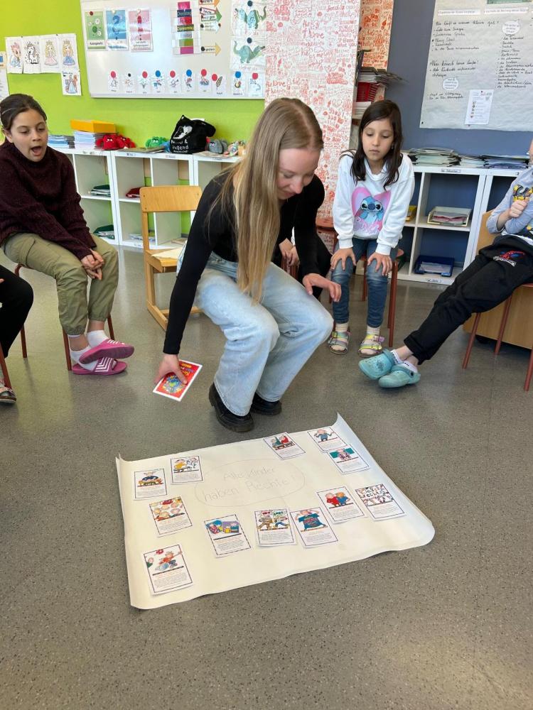 Die Kinder konnten Fragen stellen, Beispiele besprechen und aktiv mitarbeiten. Das gestaltete Plakat wird uns noch lange an diesen interessanten und lehrreichen Vormittag, bei dem alle viel Neues über ihre Rechte gelernt haben, erinnern.